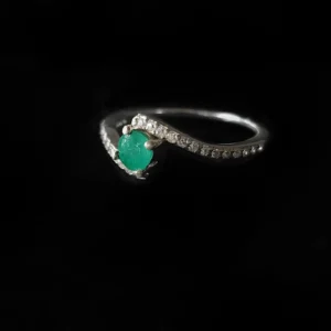 Anillo diagonal con esmeralda y zircón